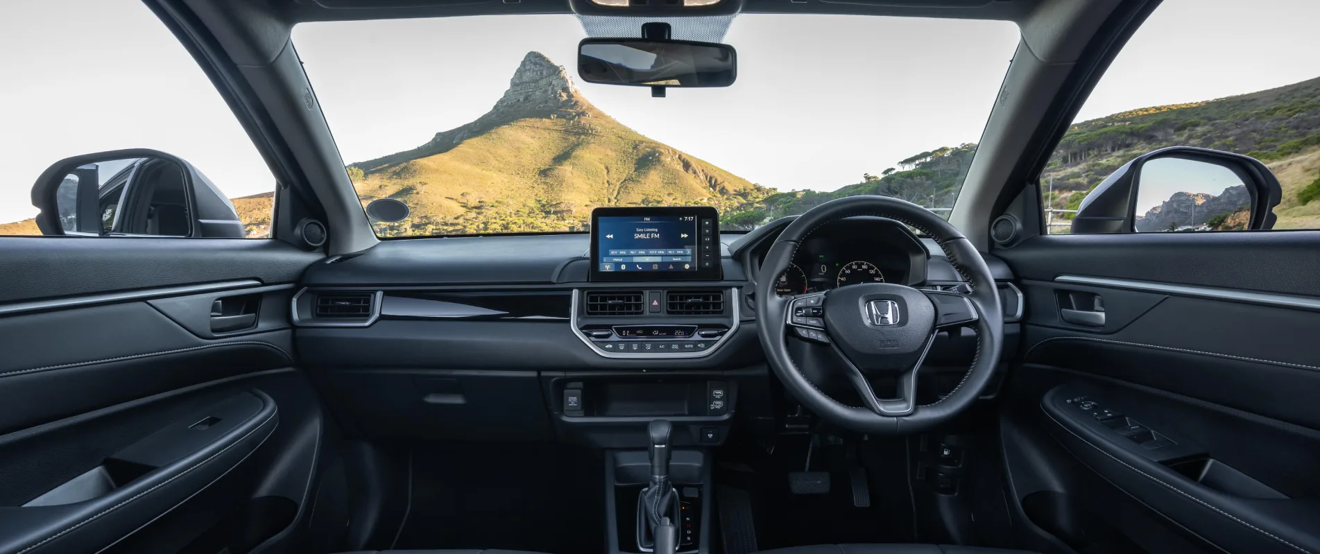 Spacious, stylish and smart, the Honda Elevate’s cabin features high-quality materials, ample legroom and a flat rear floor. Elegance models boast soft-touch panels, eco-friendly leather upholstery and a sunroof that adds light and airiness to every journey.